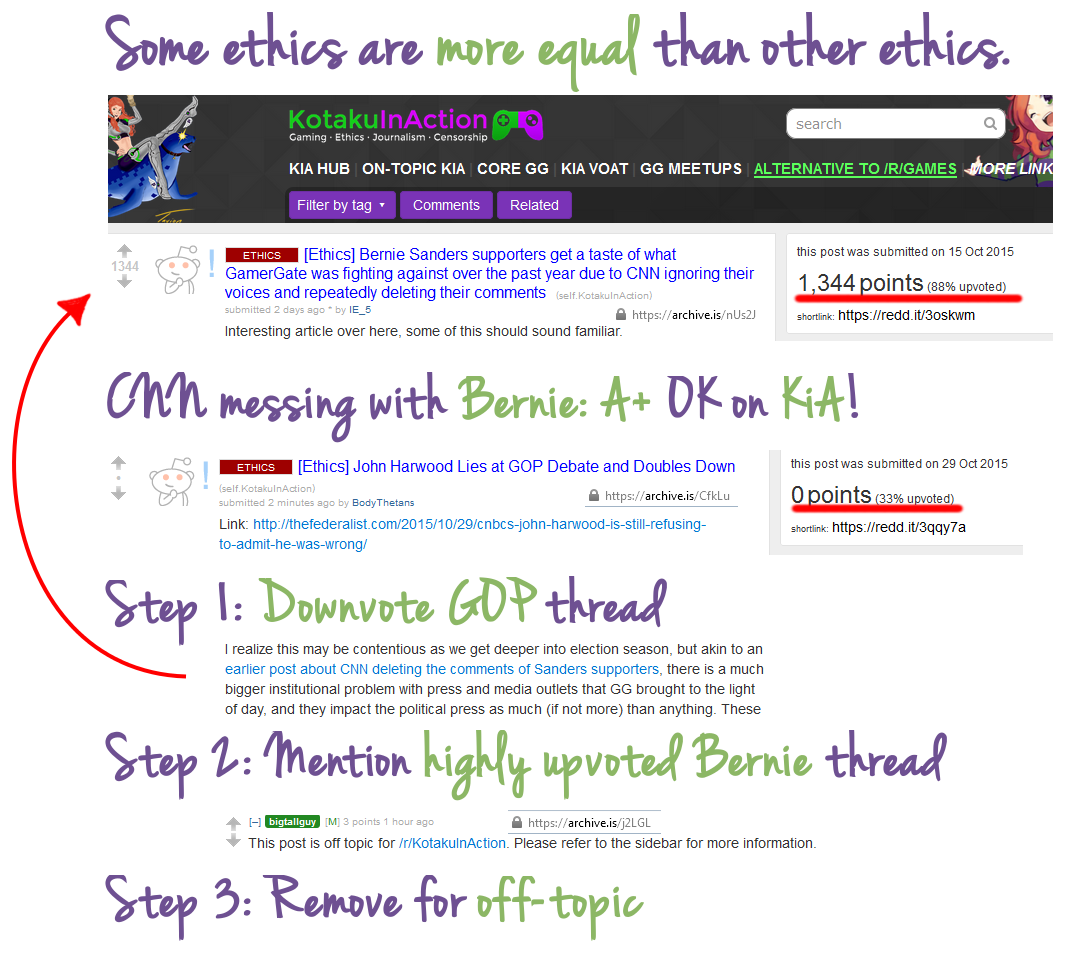 #GamerGate Media going against Bernie 1400 upvotes on KiA. Media going after Republicans. Downvoted and removed.pic.twitter.com/WuYVpXN345