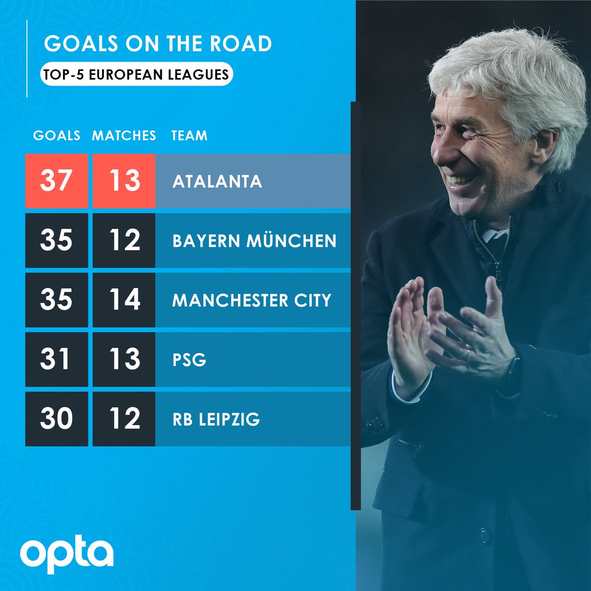 37 - #Atalanta have netted the most goals on the road (37) in the Top-5 European Leagues this season. Dea.pic.twitter.com/WU8hJM0y3L
