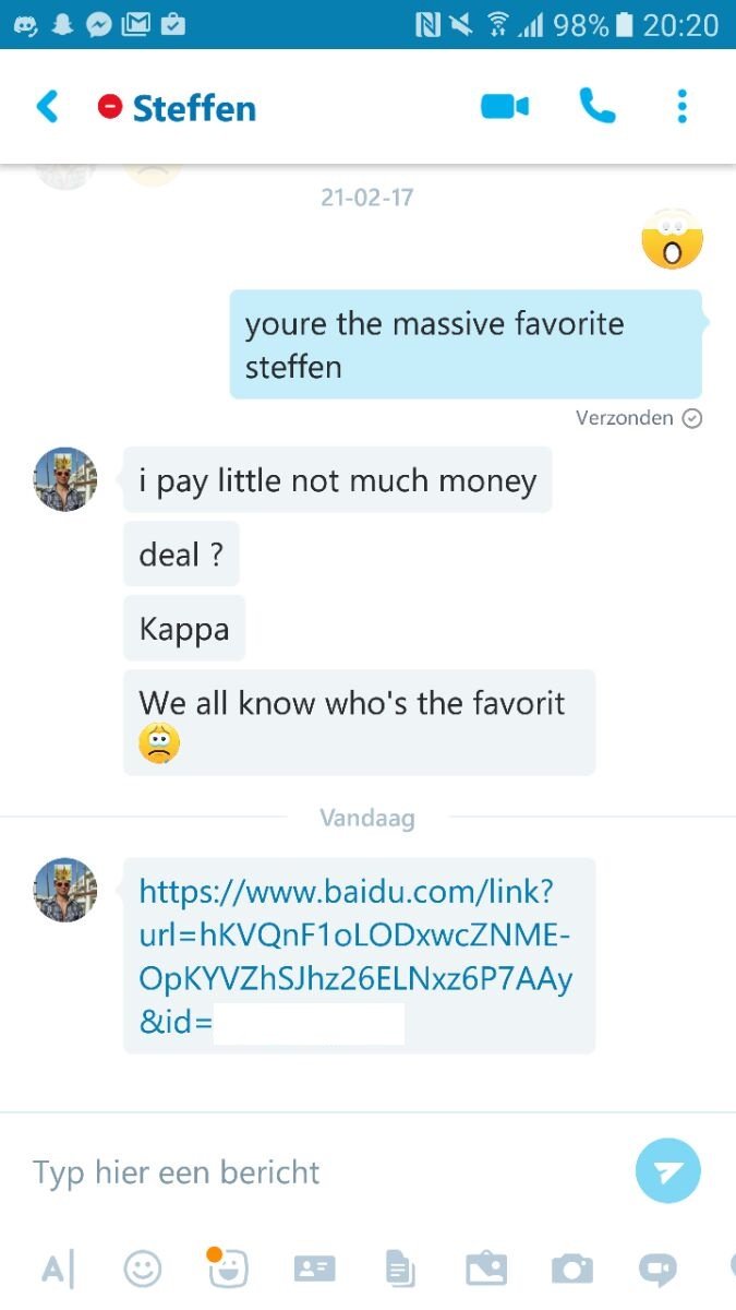 Holy shit. Why do ppl click on malware links :D. Always new "baidu" links on skype.