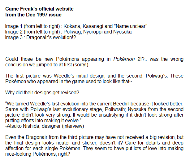 Hi FO & Fio., great work! Actually imo 変更前のグラフィックデザイン should be "previous" or literally "before-the-change(s)" rather than "initial," & the final sentence "Care for details & deep affection for each single Pokémon--those must've created the lovely, cool-lkng 'mons!"