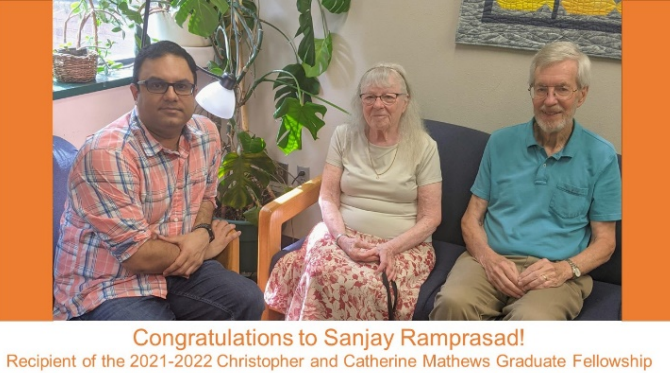 Congratulations Sanjay! This award is given based on academic merit, teaching excellence, and research potential. The best of luck in your graduate career and thank you Chris and Kate for your generosity and support of our program.pic.twitter.com/RYUcX7RHJ0