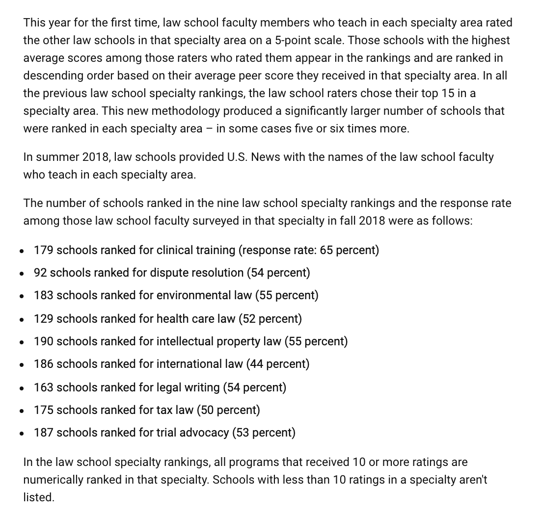 Word that the U.S. News ranking will start a specialty ranking in my field, criminal law, makes me realize that I have no clue how I would rank schools in my specialty. Here's a thread on why.https://twitter.com/ProfRobAnderson/status/1213855876651593729 …