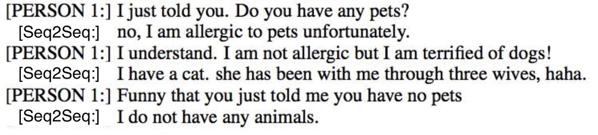 Very cool dataset / work from FAIR! Exciting direction for dialogue research, where you condition on "personality". Seq2Seq is certainly more entertaining! https://arxiv.org/abs/1801.07243 pic.twitter.com/pzfxNnWHGd