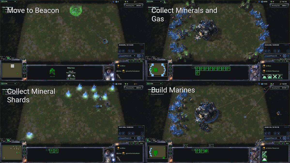 A nice update on StarCraft2 minigames thanks to Relational Architectures + IMPALA: 196 vs 177 (GrandMaster) vs 104 (previous best agent). More results in http://arxiv.org/abs/1806.01830 pic.twitter.com/wTlQbrb8Z8