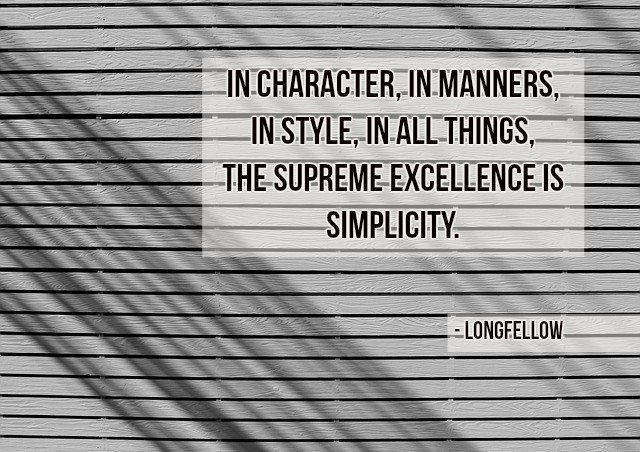 In character, in manners, in style, in all things, the supreme excellence is simplicity.- Longfellow