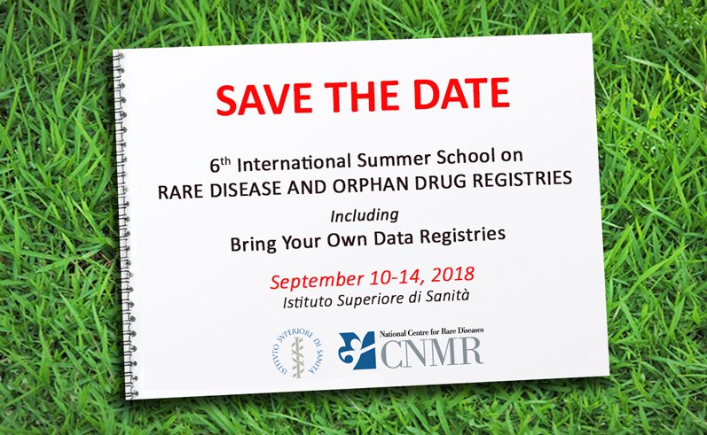 Save the date: Roma, 10-14 settembre 2018 6° International Summer School on Rare Disease and Orphan Drug Registries Istituto Superiore di Sanità, Roma http://old.iss.it/cnmr/?lang=1&id=2795&tipo=3 …pic.twitter.com/fhDsgn5cph