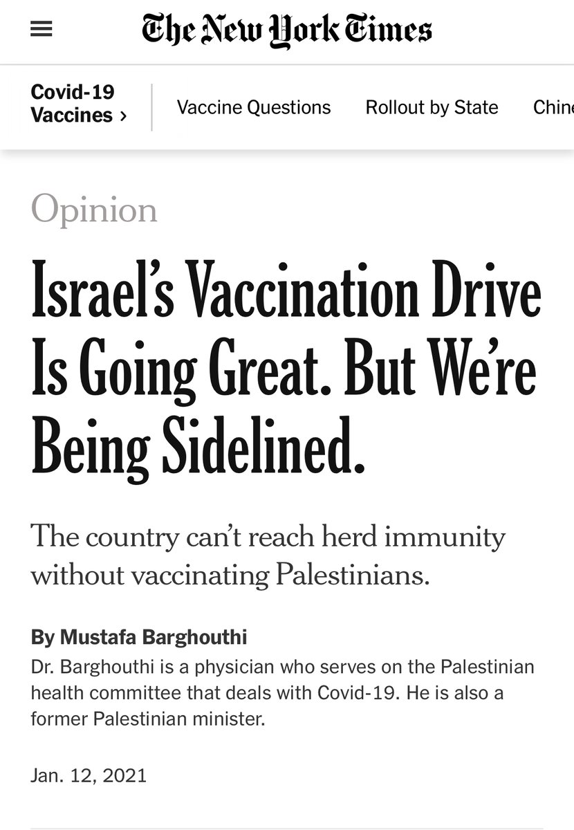 Perhaps @nytimes ought to have put a disclaimer to this propagandist op-ed by @MustafaBarghou1, that if the Palestinian Authority (which he was part of as Minister) did not pay $300 million + per year in salaries to #Palestinian murderers, they would have more money for vaccines!pic.twitter.com/BrPJrzttV5