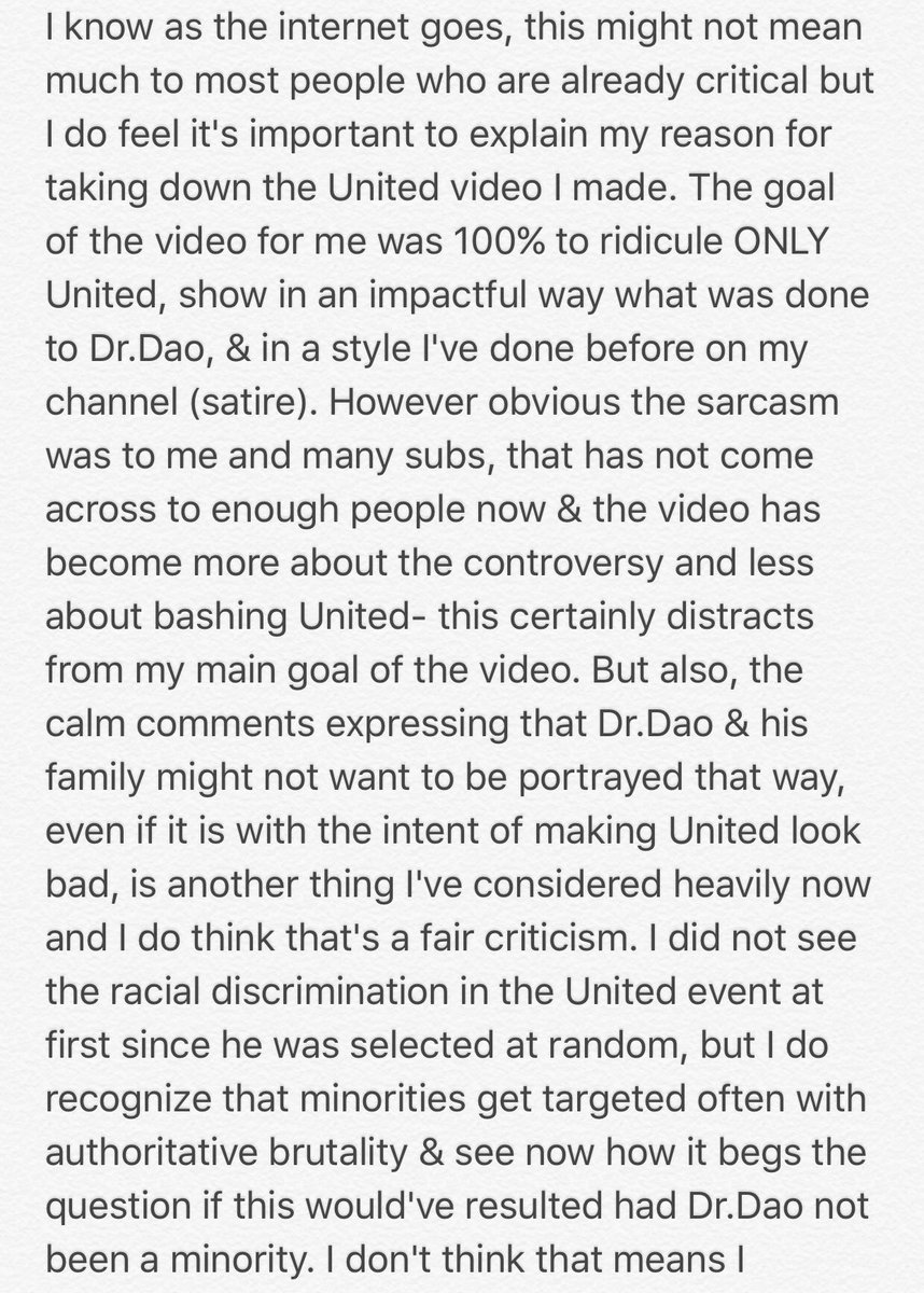 "I did not see the racial discrimination in the United event at first since he was selected at random."