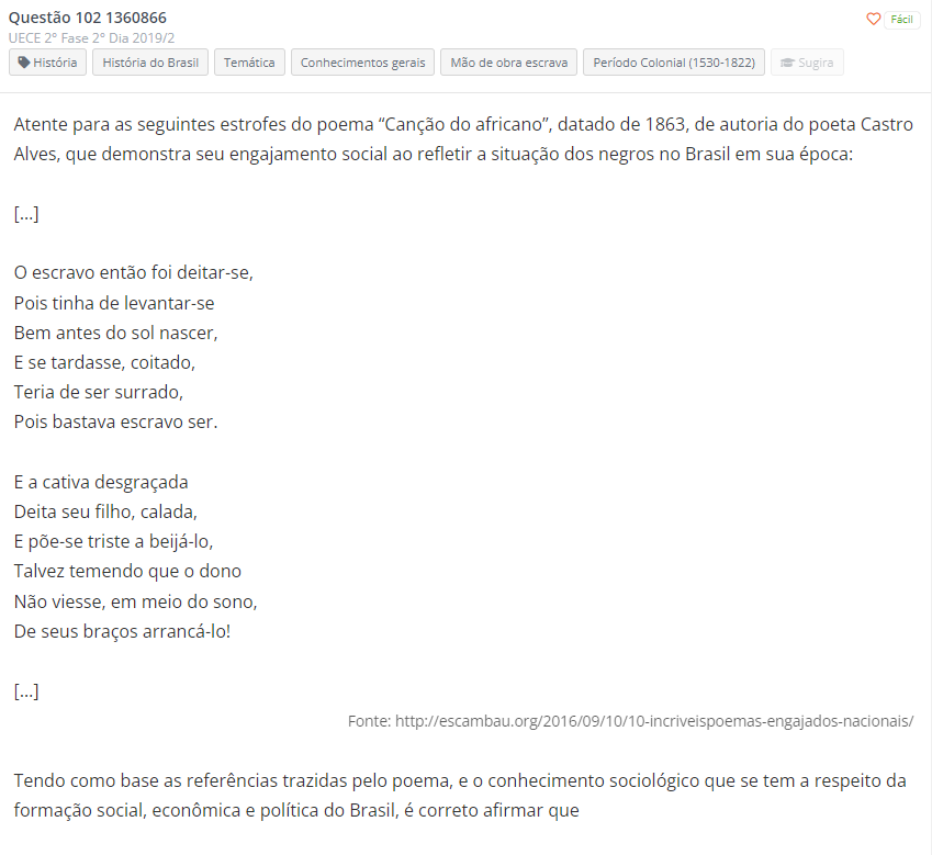 Estudando um pouco sobre história do Brasil eu fico assustado com o nível da crueldade, e vendo questões de vestibulares sobre escravidão eu fico mais assustado ainda com as alternativas marcadas por um numero alto de pessoas...pic.twitter.com/6SGRBeDgVR