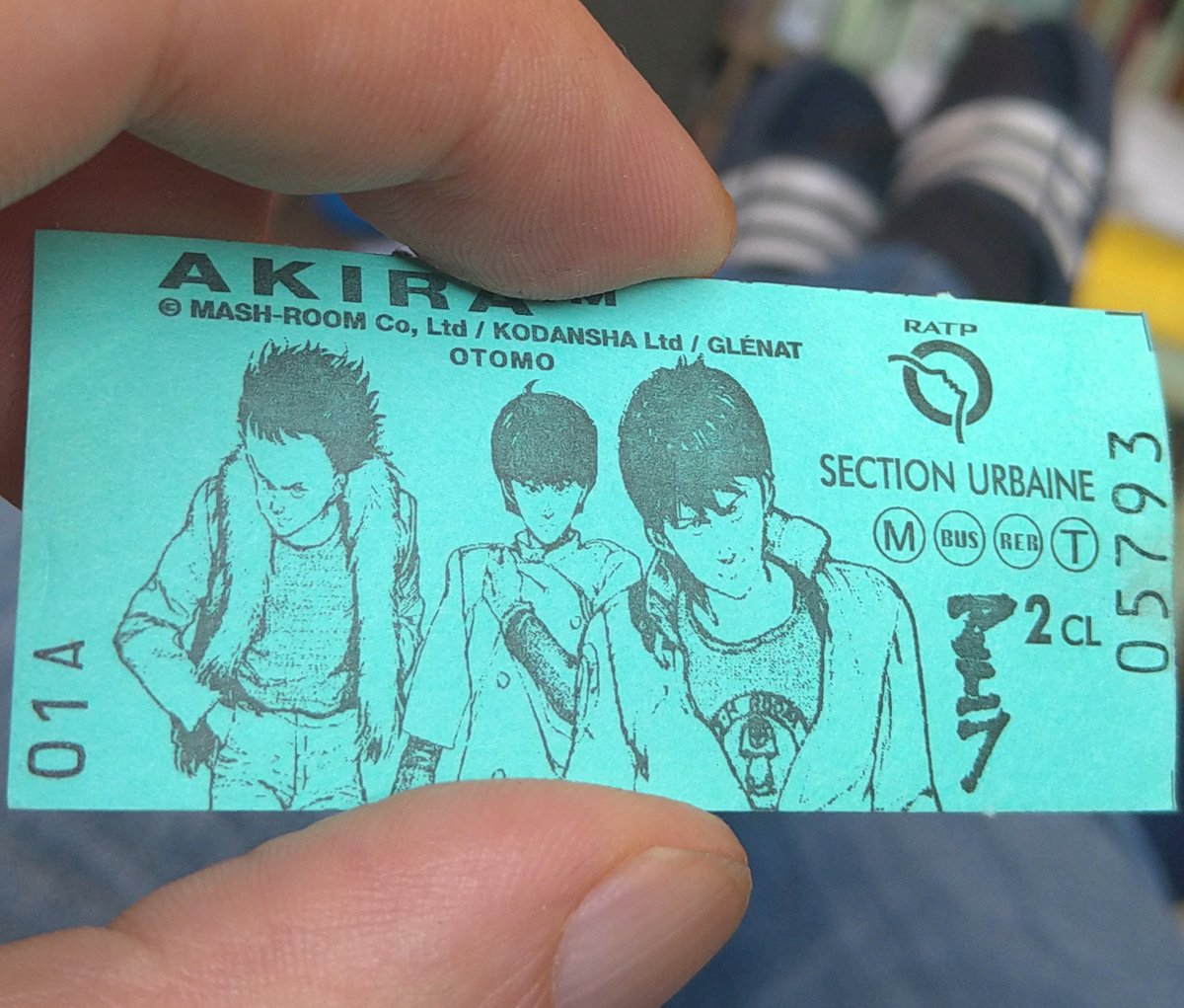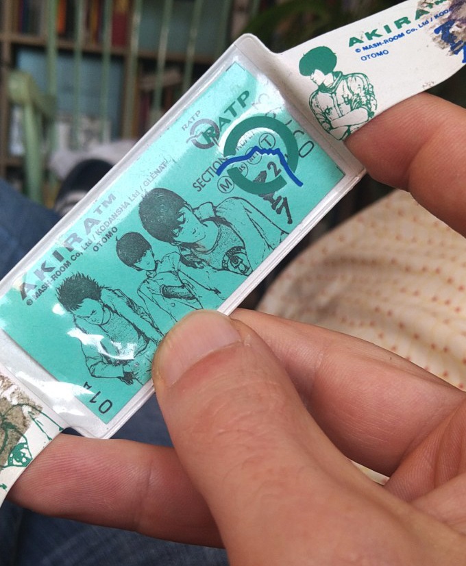 une fois par an, à des fins d'admiration pure, je sors de son tiroir ce précieux artefact, le ticket de métro (et son bracelet) crossover promotionnel Akira x