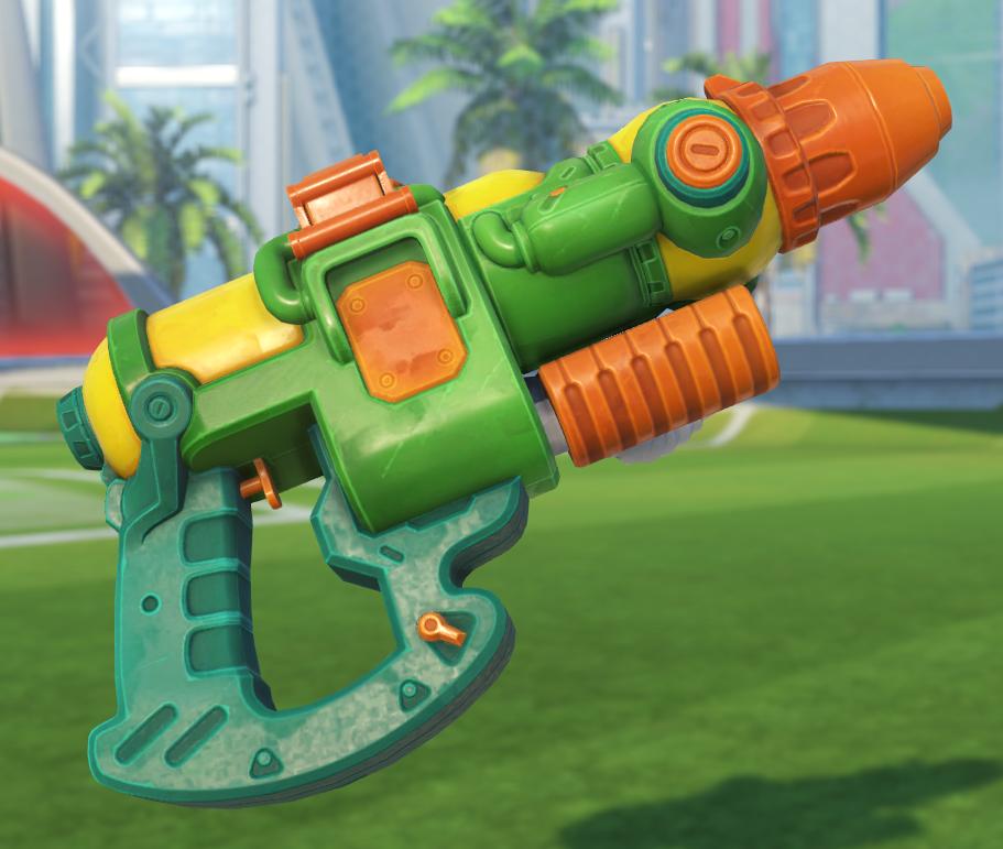 Torbjorn's Surf 'N' Splash skin. (legendary) Text on the back of the water gun says "DUPER DAMPER" a nod to Super Soaker.pic.twitter.com/XUine96pwp