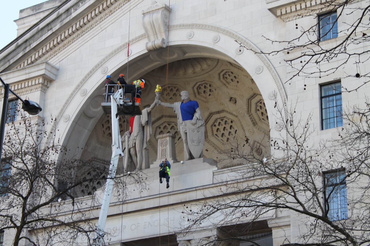 @leocaillard dress the historic statues above the entrance to Bush House in Aldwych... you certainly don't see that every day!@KingsCollegeLon,@CulturalKings#TheClassicalNow https://www.overbury.com/knowledge/news/art-installation-bush-house/ …pic.twitter.com/eViPVj0Q1M