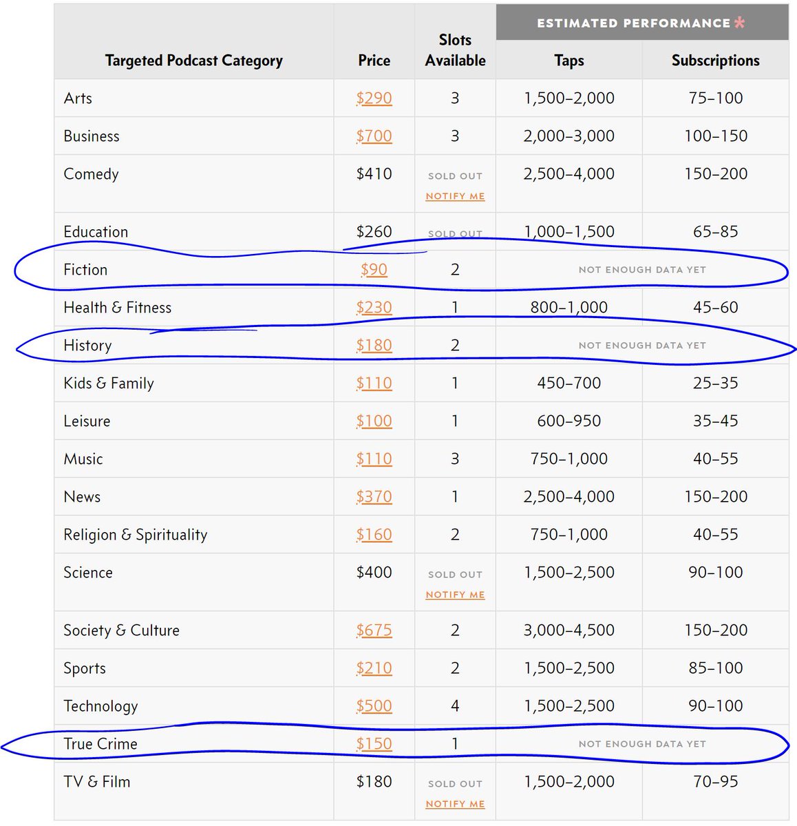 Overcast now supports ad purchasing for Apple Podcasts’ new top-level categories added this summer: Fiction, History, and True Crime. (I’d been waiting to support them until a lot of podcasts had self-identified into them. Otherwise, ads would be matched against too little.)https://twitter.com/IanMikutel/status/1174180275032666116 …