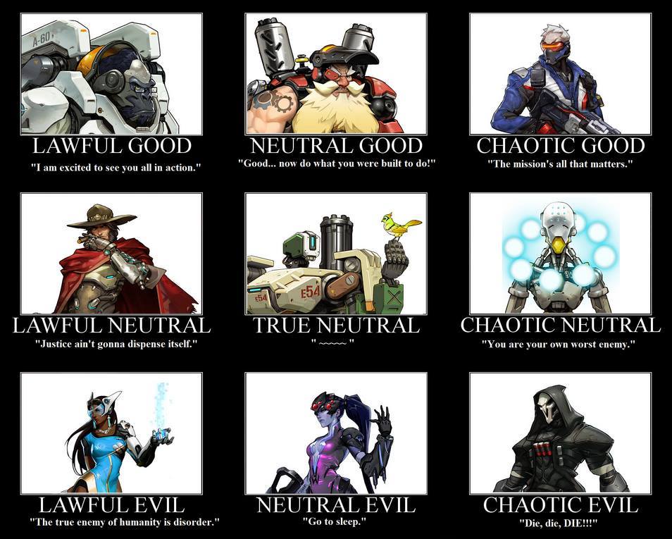 @spacebling Widowmaker is Lawful Evil, Genji is Neutral Evil, Junkrat is Chaotic Evil. Important facts
