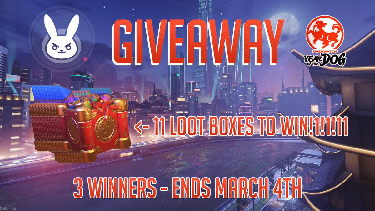 ✨ GIVEAWAY ✨ RT & Follow us for a chance to win 11 LUNAR LOOT BOXES!1!!11! 3 winners - Ends March 4th More ways to enter here: https://gleam.io/tdHdm/overwatch-feeds-year-of-the-dog-giveaway … pic.twitter.com/xnkTiGCD8g
