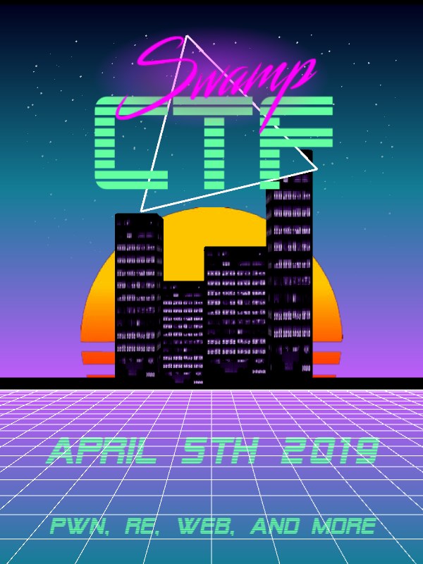 #SwampCTF, UF's 2nd annual Capture the Flag competition hosted by@UFSIT. It starts April 5th 18:00 EDT and lasts 48 hours. Look forward to pwn, re, smart contract, web, forensics, crypto, and misc challenges! Register now: https://swampctf.com pic.twitter.com/cQtGSDvdM6