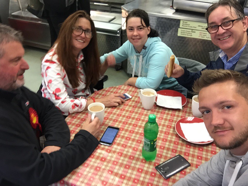 After a morning delivering leaflets featuring coffee and toast it's time for us to sample the real thing