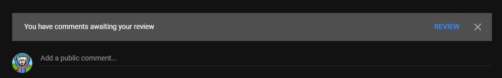 @TeamYouTube I seem to be having a glitch for where the 'Review comments' bar is glitched and I see it on every video, even on other channels videos that are not mine. Its now starting to become irritating. Can you fix this please?pic.twitter.com/PprTjn7bP4