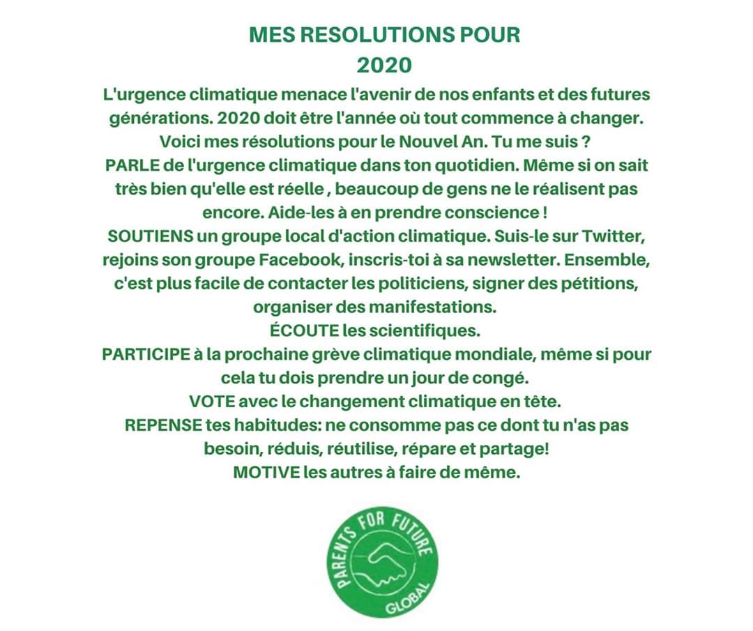 Le Nouvel An approche et Parents for Future Global souhaite partager ses résolutions pour 2020. Parents, grand-parents, citoyens, nous pouvons tous nous mobiliser pour garantir un avenir à nos enfants. Bonne année 2020 à tous !