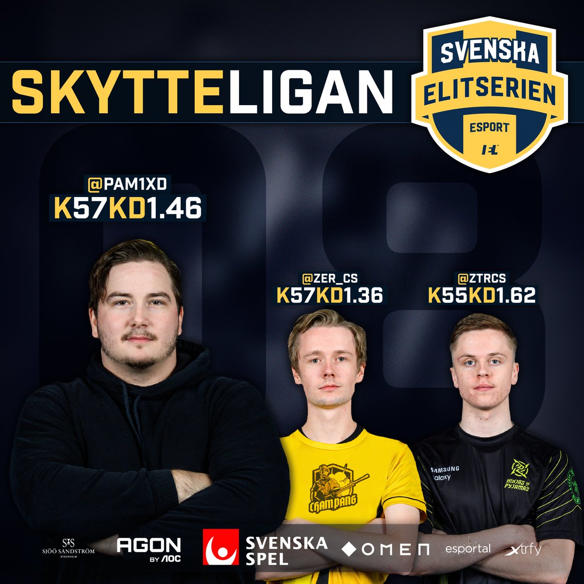 @PALM1xD från@LakeShowCSGO och@ZER_cs från#champang med 57 frallor vardera i toppen. Tätt efter kommer@ztrcss från@NIPCS