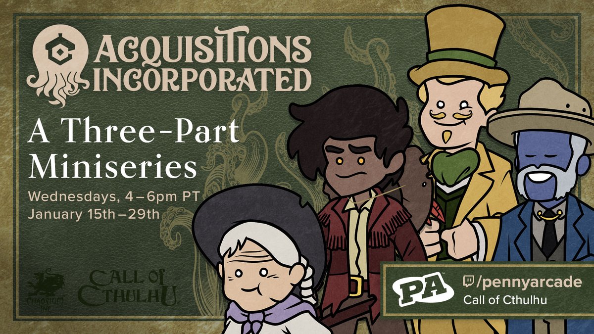 It's time... join us at the mouth of madness (http://twitch.tv/pennyarcade ) for the concluding chapter of The "C" Team: Call of Cthulhu