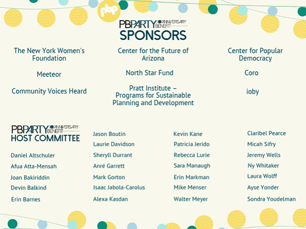 Introducing our #PBParty 10th Anniversary Benefit #Sponsors & #HostCommittee!pic.twitter.com/A6GzwXkTG4