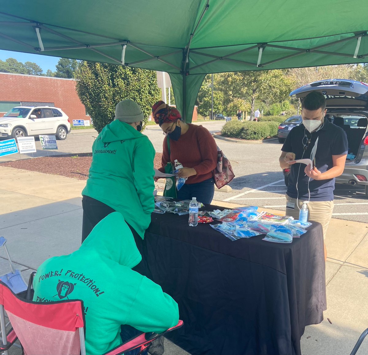 During early voting BYP100 Durham joined over 4000 North Carolinians providing "Power, Protection, and Encouragement" at the polls. Our safety teams passed out PPE, snacks, info about BYP100 and offered encouragement and safety to voters. Community based safety in action! pic.twitter.com/chNUPlKOuN