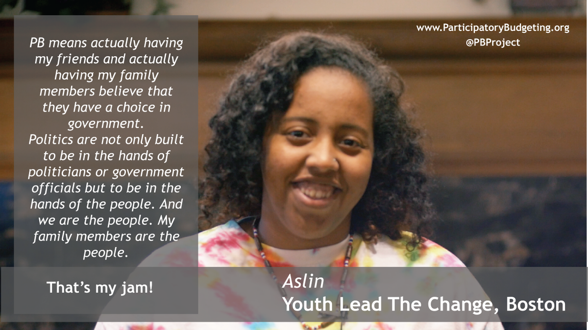 RT @PBProject: #ParticipatoryBudgeting means a choice in government- Aslin, @YouthLeadBoston @peterlevinepic.twitter.com/w1YZkd12Ng