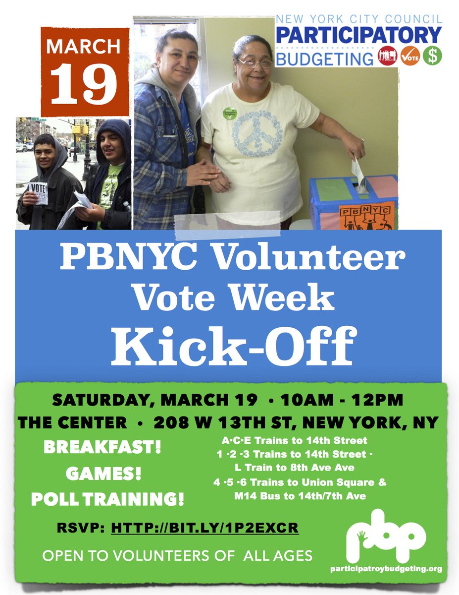 4 days left! Sign up as a volunteer for #PBNYC #Voteweek, March 19th 10-12 pm! http://bit.ly/1M6YQZv pic.twitter.com/ivwOqM0zYG