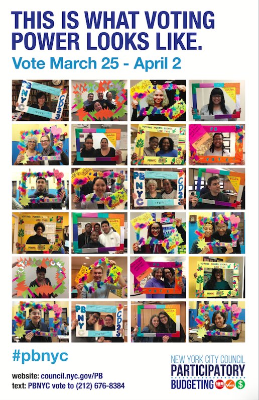 Tomorrow is the last day to vote in #PBNYC ! Make sure your voice is heard. #ParticipatoryBudgetingpic.twitter.com/qPpRWxNuzR