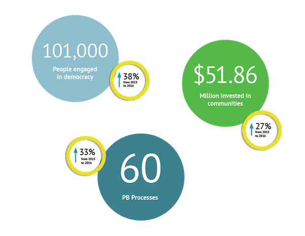 This past year, #participatorybudgeting grew a lot! Read more impacts from 2016-17: http://bit.ly/2tQxjfG pic.twitter.com/MrGExSEFh1