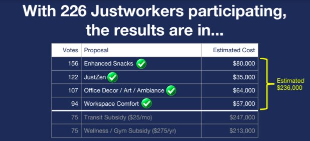 Democracy at work? Read how @JustworksHR invested in its employees’ ideas & priorities through #participatorybudgeting. http://ed.gr/p6ys @ioatespic.twitter.com/Ga7eKikVaS