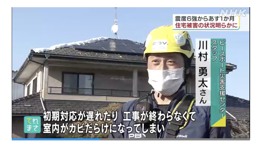 #福島県沖地震 を受けて、宮城県山元町で継続中の屋根の応急対応支援の様子が、NHK@nhk_tohoku_newsに取り上げられました