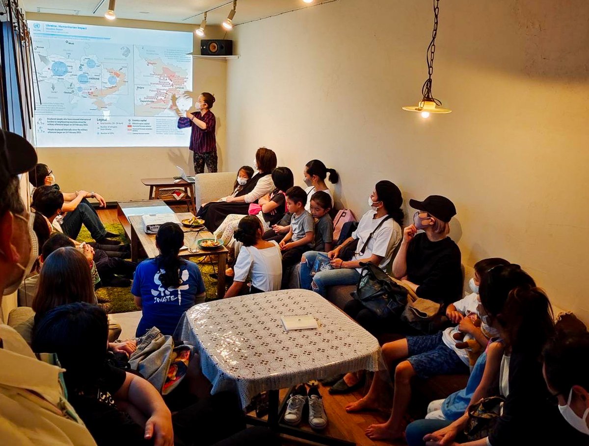 のスタッフ約100名に、調査報告と今後の避難民の方々への支援についてシェア