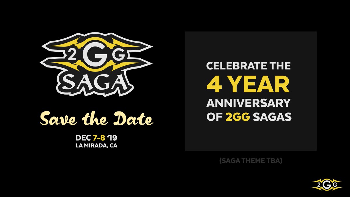 2GG @2GGamingSave the date as we will be celebrating the 4 year anniversary of 2GG Sagas on December 7th and 8th! As a bonus, whoever guess the theme of the Saga correctly will get a free T-Shirt. Guess the name of the saga correctly and we’ll send you a hoodie! pic.twitter.com/TnDjQR3F7xShow this thread1 reply 0 retweets 0 likes