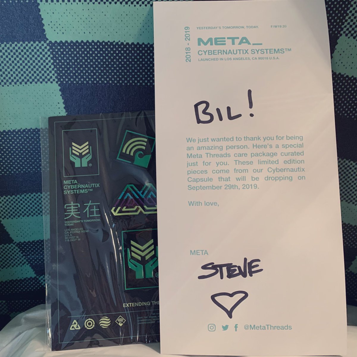 Opened my door to the DOPEST care package from @metathreads. It even came in a custom box to celebrate the new CYBERNAUTIX SYSTEMS collection dropping at the end of this month! 😍😍😍 Be sure to peep their socials for when you can get your hands on it ASAP. #adpic.twitter.com/WWEzkukuHK