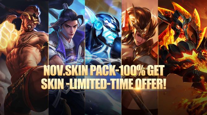 It's time for the November skin pack! Get a chance to earn one of the following four skins: Ryoma's Yakuza, Flash's Out of Time, Taara's Divine Firestone, or Zill's Inferno!pic.twitter.com/5N7ZnWHawk