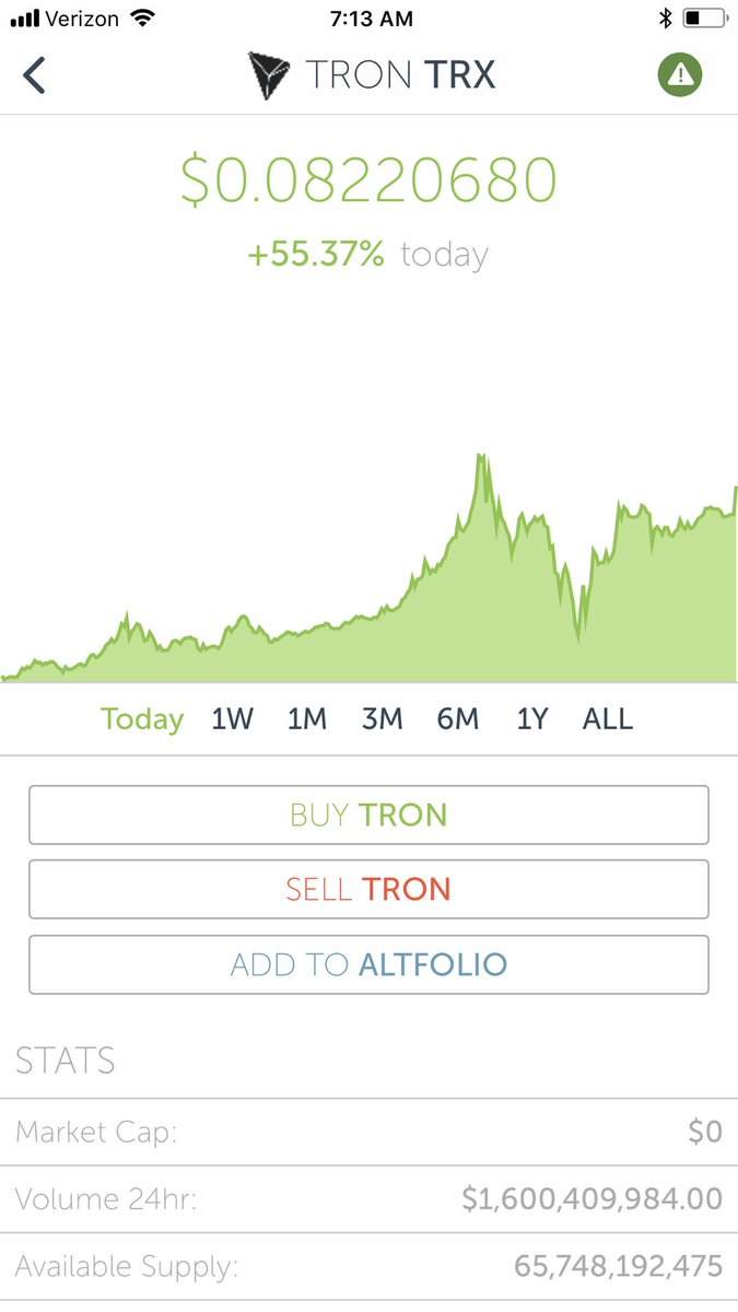doing well today so far! I was advised to sell all my tron but idk how I feel about that ... thoughts?? Why or why not? #TRONCOIN #cryptotrading #cryptotwitter #cryptocurrency #altcoinspic.twitter.com/lw2RiSuQbh