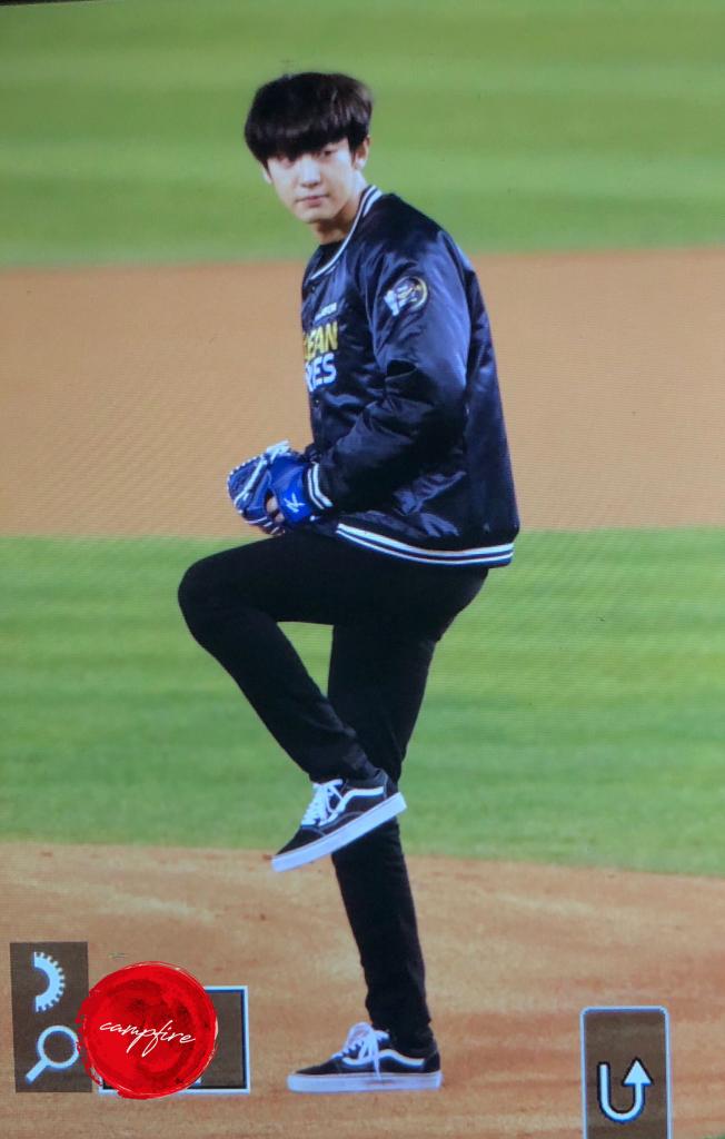 [PREVIEW • 051118] Chanyeol fazendo o primeiro arremesso para o KBO League Korean Series Game 2018.