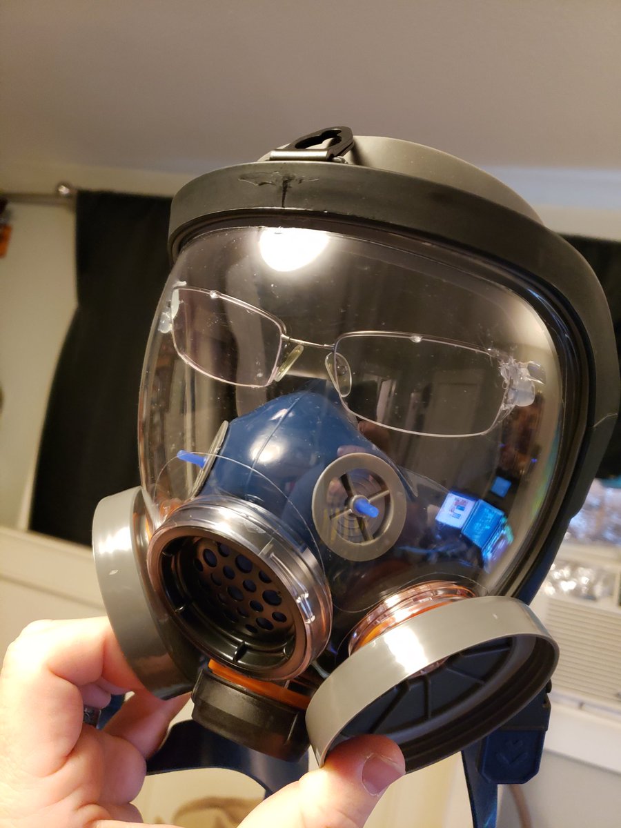 For anyone who needs #glasses and #gadmask protection, you can use an older pair of glasses you don't use often, and remove the arms, hot glue them into place in your mask. #PortlandProtestspic.twitter.com/5aYgarxocG