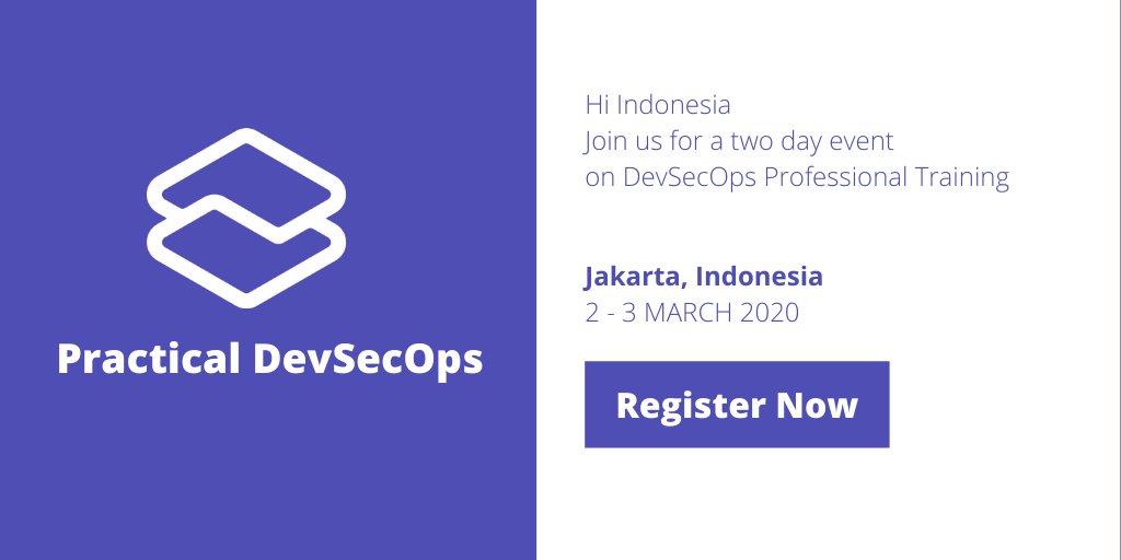 Hi Indonesia, Join us for a two-day event on DevSecOps Professional Training, Jakarta 02 - 03 March 2020 Registration now at https://buff.ly/2F7p3fw pic.twitter.com/62Uu0qLKgB