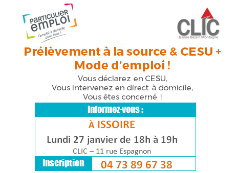 et le #CESU + : RDV au CLIC d'@VilleIssoire, le lundi 27 janv. à 18h pour un atelier d' 1 heure pour tout comprendre