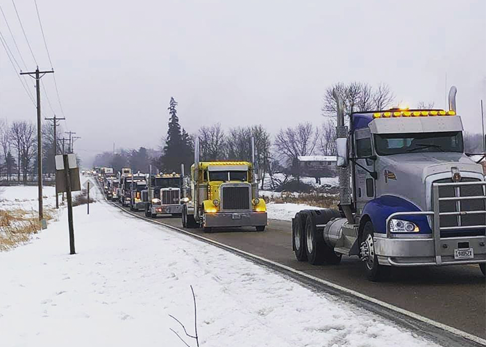 50 truckers convoy in Berlin, Wisconsin to bring joy to boy with terminal cancer.