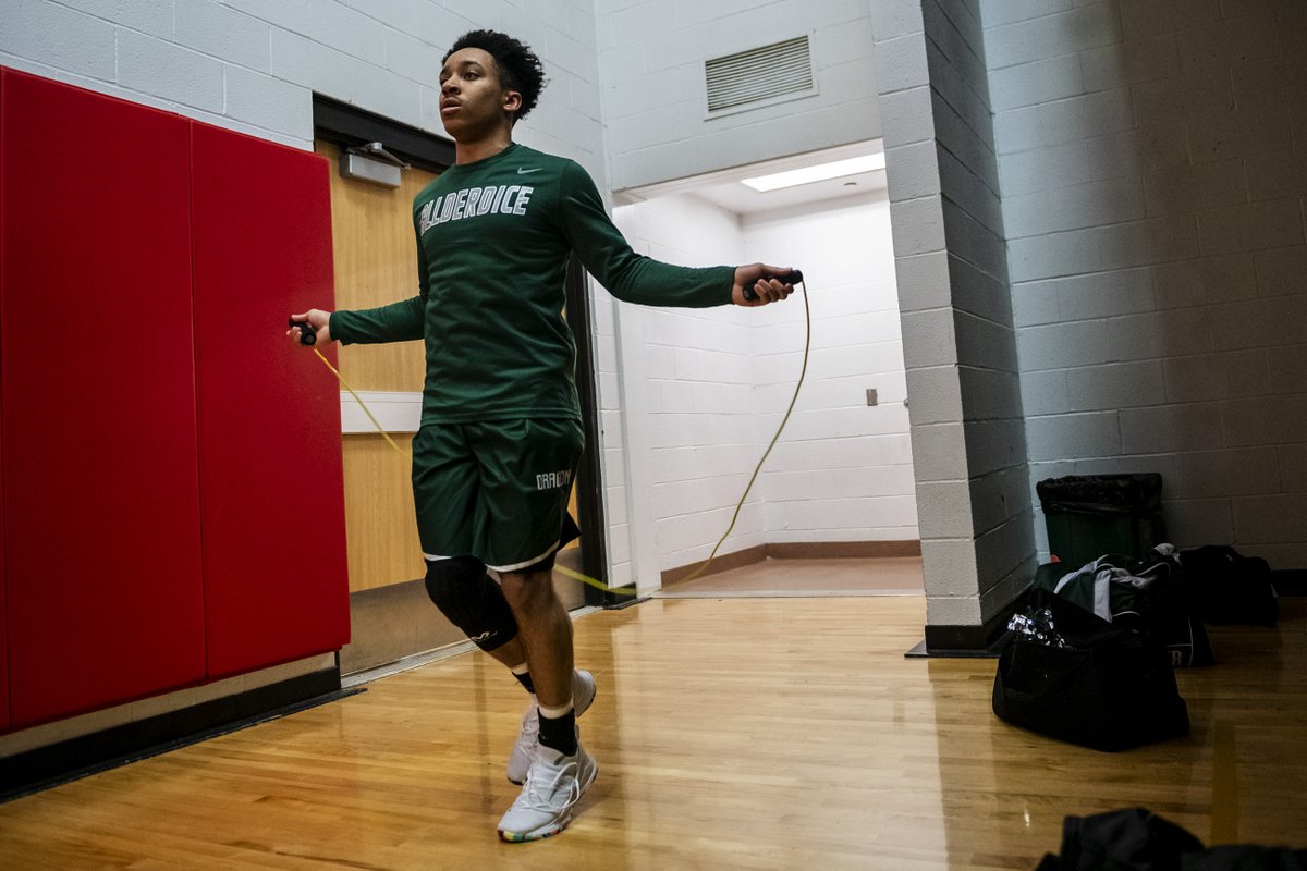 Sean Graves, of Allderdice, jumps ropes as he warms up before his team faces Upper St. Clair in the first round of the PIAA Boys basketball playoffs at Fox Chapel Area High School in Fox Chapel. (Michael M. Santiago/Post-Gazette)pic.twitter.com/cgsuT9wEY2