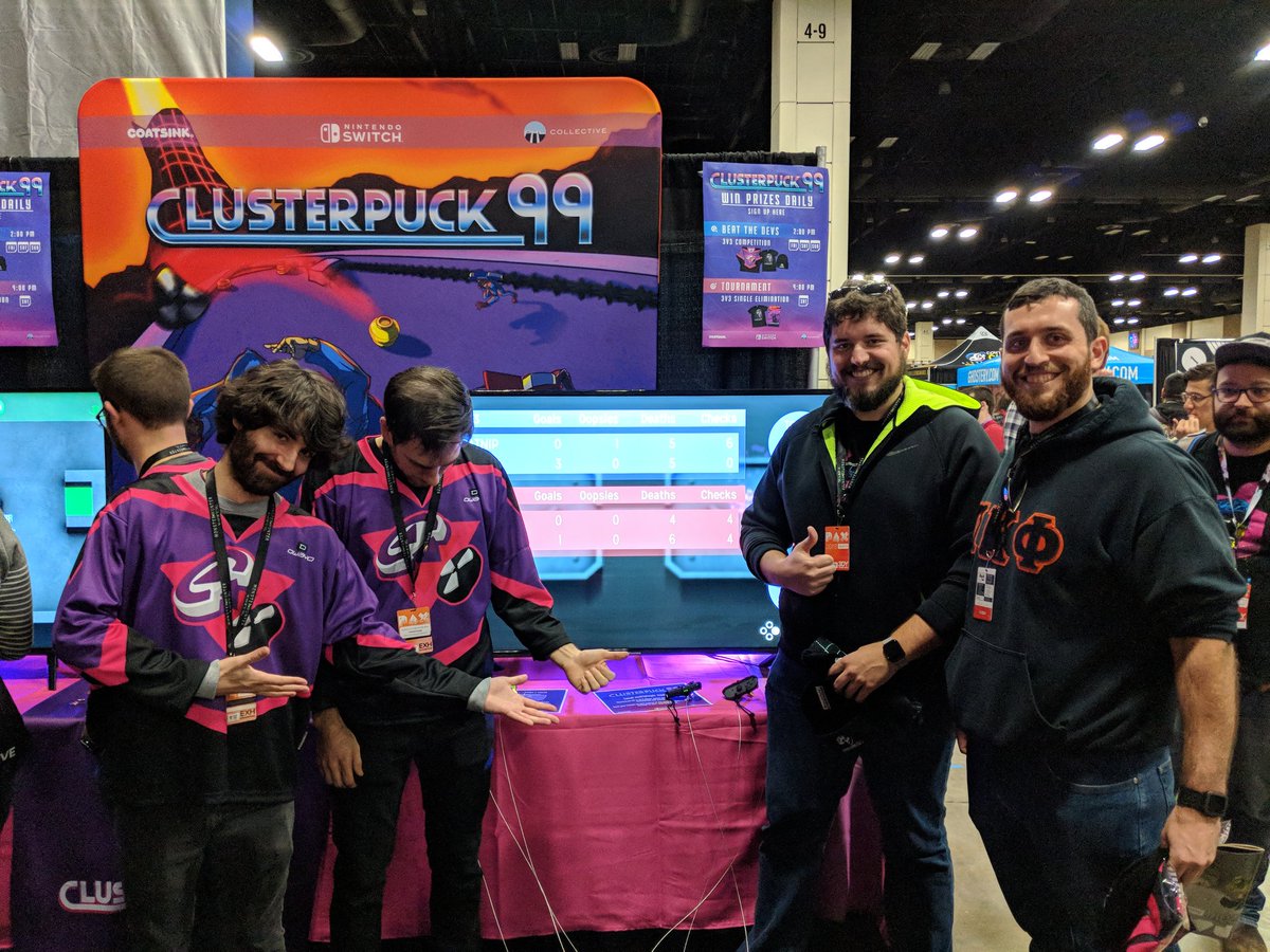 We had some players actually beat us in a game of #ClusterPuck99 at #PAXSouth. The lucky winners took home a custom CP99 hockey jersey, t-shirts and beanies!pic.twitter.com/KwyyNSKum1