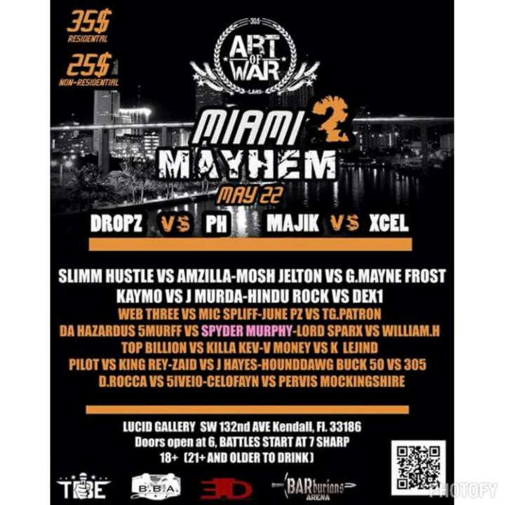 Miami and all surrounding Florida areas I will be in the 305 battling Dropz Hernandez for Art Of War… https://instagram.com/p/26ShQjuYit/