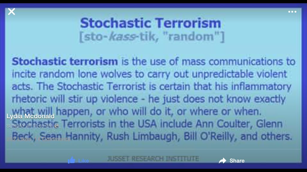 Stochastic Terrorism is real. Using ones platform to incite others to "rid me of this troublesome priest" is exactly what Trump has done. Trump is a Stochastic Terrorist.pic.twitter.com/kyuqwkXh0X