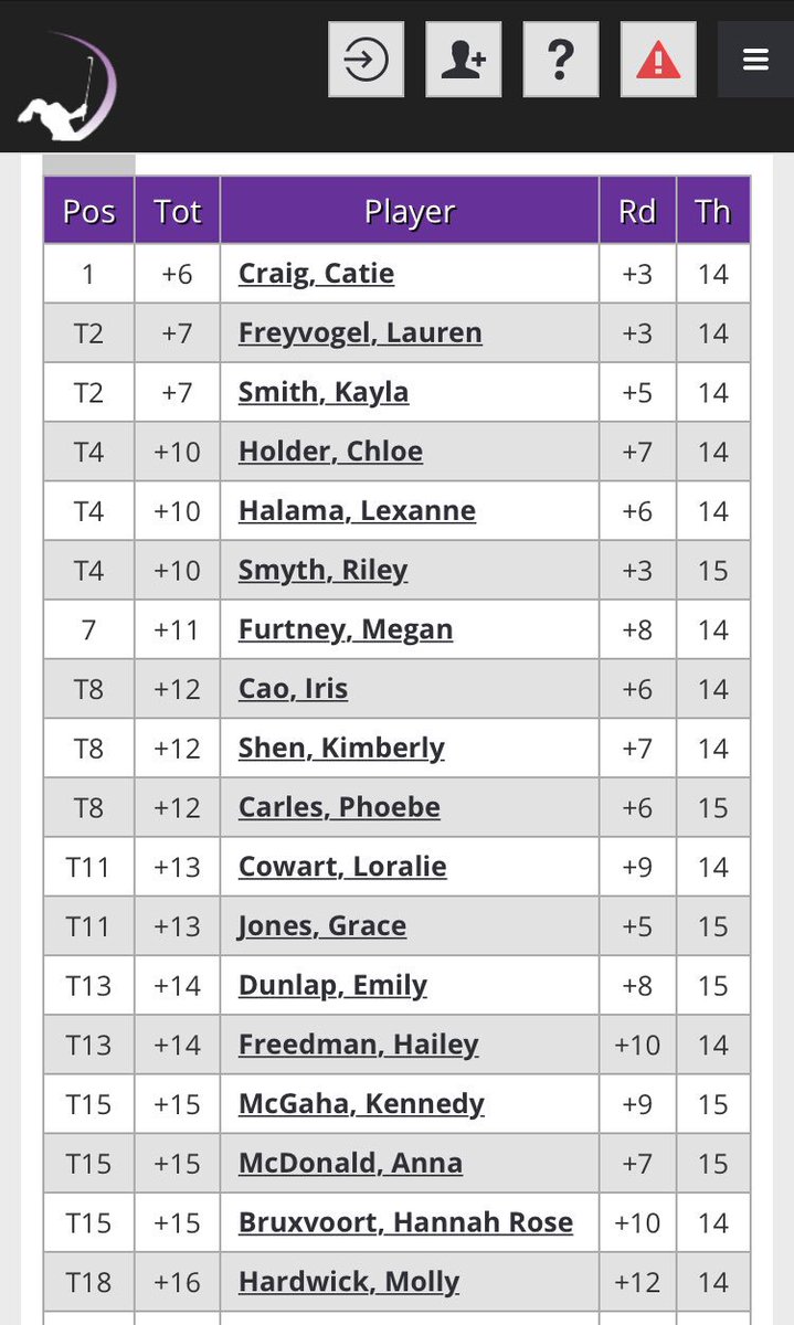 Kayla Smith knocks it to 7 ft on hole 17! She is currently tied for the lead with Lauren Freyvogel.