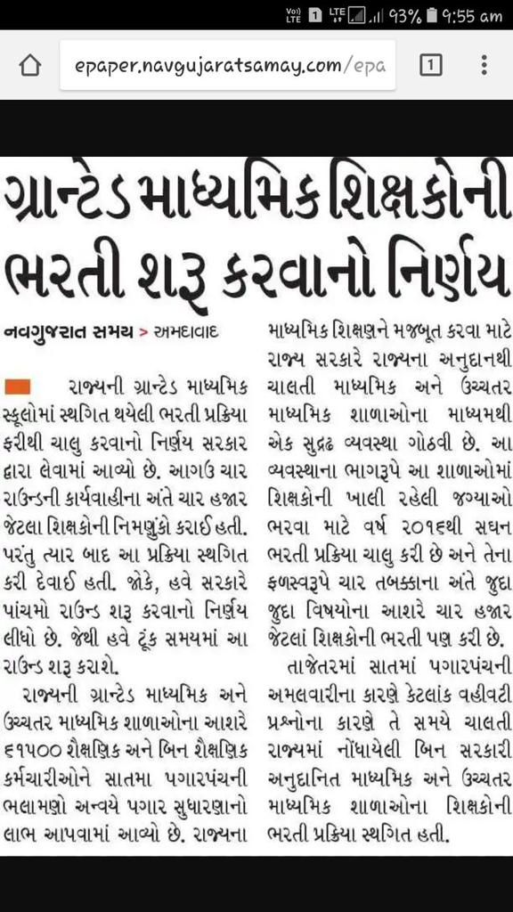 આદરણીય સાહેબ ગુજરાત ગ્રાન્ટેડ માધ્યમિક અને ઉચ્ચ.માધ્યમિક શાલાઓની ભરતી વર્ષ 2016 નો 5મો તબક્કો શરુ કરાવવા નમ્ર વિનંતિ. ફેબ્રુવારી 2018 નાં મંજુરી મળેલ એ વાત ને 6 મહિના નો સમય વીત્યો છતાં 5મો તબક્કો બ્હાર પડેલ નથી. મદદ કરવા વિનંતિ. વિકાસ સાર્થક કરો