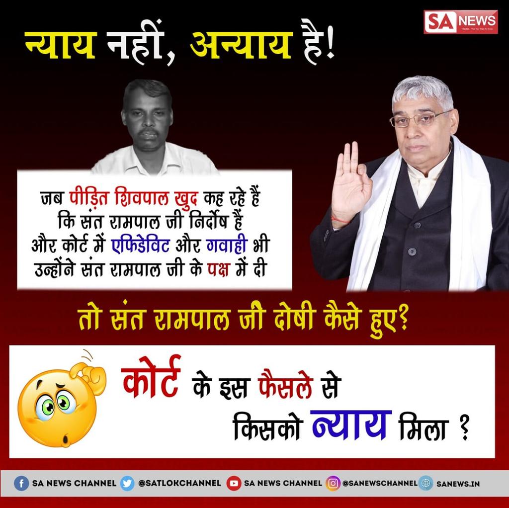#SantRampalji को हिसार कोर्ट में जो#गलत_फैसला सुनाया गया है, आप उसके लिये क्यों कुछ नहीं करते? जज ने यह#गलत_फैसला सुनाया, जबकि शिकायतकर्ता ने भी कहा कि मृत्यु पुलिस की वजह से हुई है। फिर भी सजा#SantRampalji को क्यों दी गयी??@PMOIndia@abpnewstv@rashtrapatibhvn@NewsNationTVpic.twitter.com/C6yEjd09eE